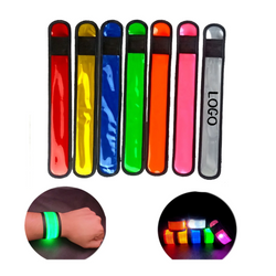 This slap bracelet contains a button battery, which can continue to emit light for a long time. Press the switch, there are three modes: constant light, slow flash and fast flash. It is often used for concert cheering and night running activities. It can get others to find you in tihe crowd. This lithium battery CR2032 battery is installed and replaceable. Customize your company name and logo to improve safety. 9 7/8"L x 1 9/16"W
