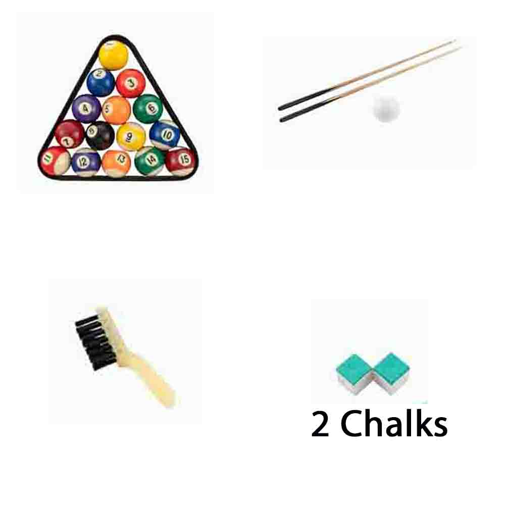 Enhance your game room with this exquisite mini pool table featuring six professional drop pockets and a sturdy solid wood frame. Complete with two 42 1/2" cue sticks, a rack, balls, chalk, and an accessory brush, this table is perfect for hours of entertainment. Personalize it with a company logo, name, event, or team to create a unique keepsake that will be the focal point of any room for years to come. Elevate your space with this stylish and functional mini pool table.