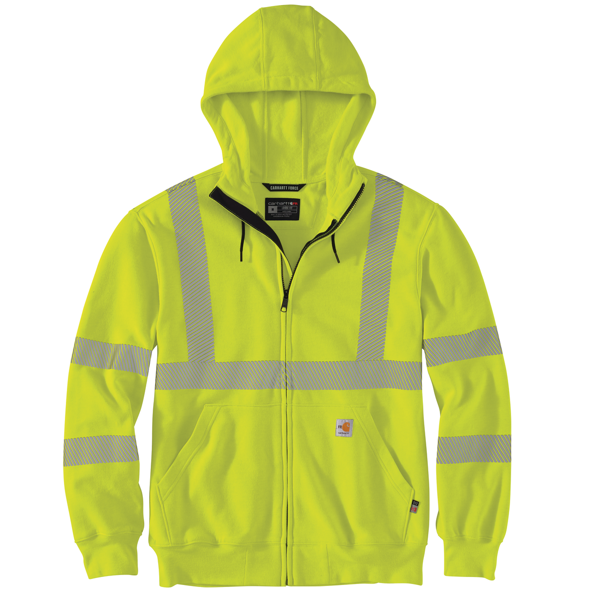 Carhartt 105786 mens flame resistant high-visibility force loose fit midweight full-zip class 3 sweatshirt